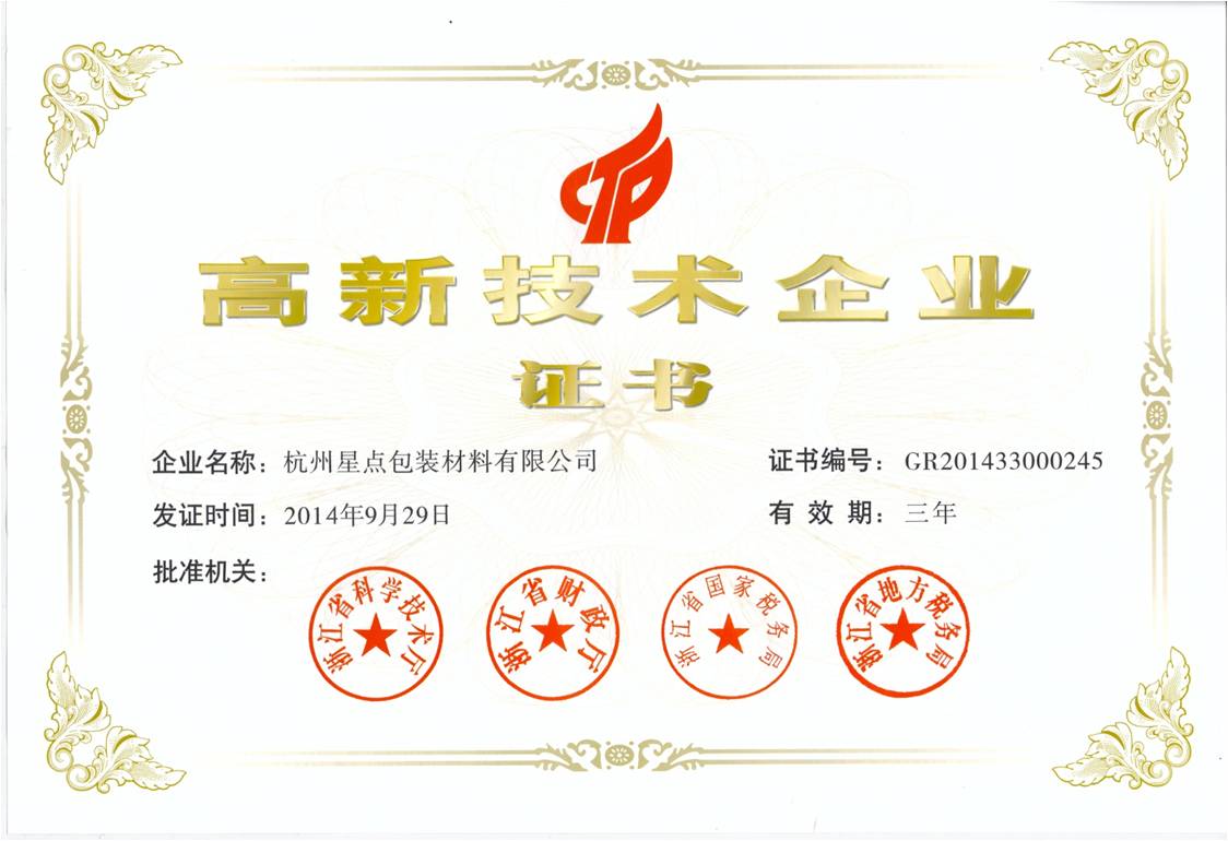 您現(xiàn)在的位置:杭州星點(diǎn)包裝材料有限公司>認(rèn)證資質(zhì)