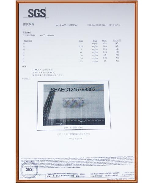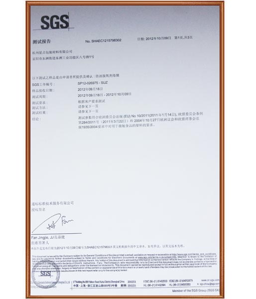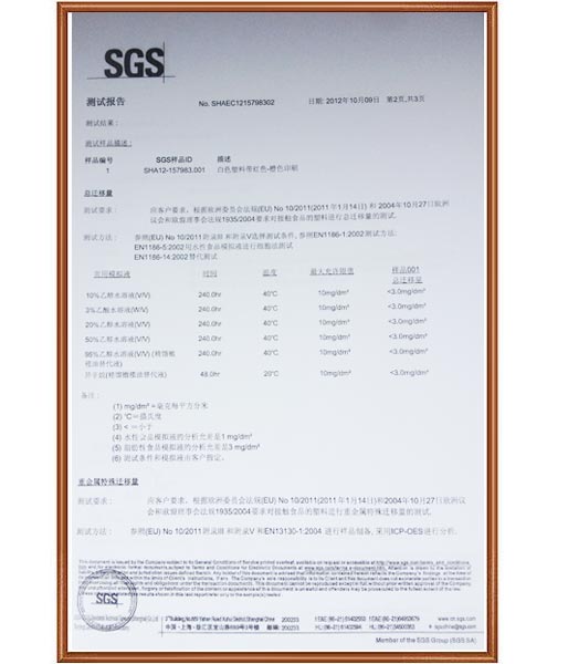 .SGS 食品安全相關(guān)證明:EU NO 10/2011, EC NO 1935/2004